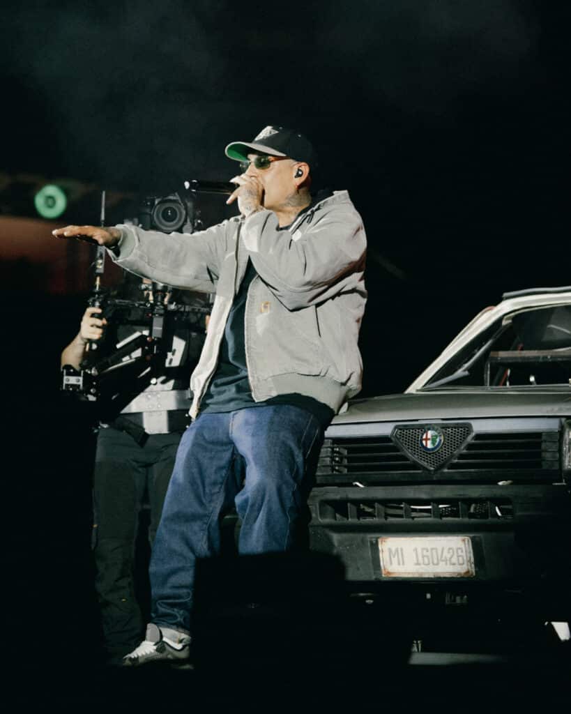 «Piuttosto che forzarti a sperimentare e rischiare di fare cose fuori dal tuo mondo, finendo per scimmiottare qualcun altro, io penso che sia meglio lavorare sul tuo modo di vedere le cose», ci raccontava Emanuele nella nostra cover story in occasione dell’uscita di Funny Games, il suo ultimo album. E lo show all’Unipol Forum a Milano è stato un vero e proprio manifesto del mondo di Noyz Narcos. Nulla durante il live è infatti lasciato al caso.