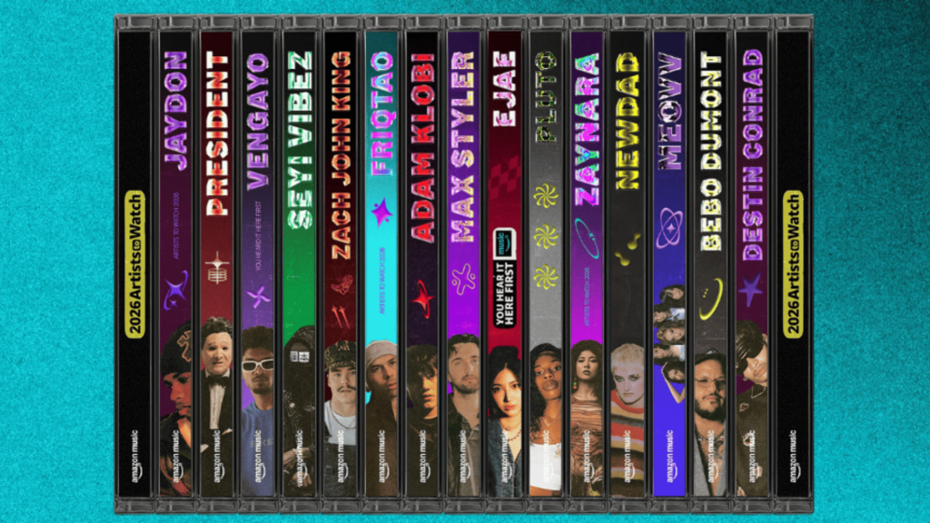 Tra gli Artists To Watch che Amazon Music ha scelto per il 2026 ci sono: Destin Conrad, Seyi Vibez, EJAE, Max Styler, PRESIDENT, NewDad, MEOVV e Adam Klobi. I loro nomi sono stati anche inseriti all’interno di 28 playlist chiave in tutto il mondo.