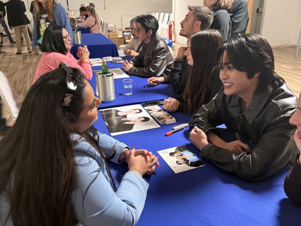Dentro si entrava per lo show e si usciva per le firme. Poi si tornava per le foto e si aspettava quel minuto di meet and greet. Per molti è valso l’intero viaggio perché ha trasformato la distanza di uno schermo in uno scambio vero. A un palmo dal volto che fino al giorno prima si adorava solo online. Si rideva sul palco e si piangeva al tavolo delle foto, qualcuno tremava quando arrivava il proprio turno e gli attori allungavano la mano per calmare il respiro, e quando le lacrime scendevano lo staff si avvicinava, consolava e passava un fazzoletto. I regali venivano consegnati alle firme o al meet and greet, fan-book, oppure lasciati in segreteria per chi non aveva questo benefit incluso nel pass, roll-up e piccoli oggetti preparati con cura molto prima dell’evento, tra cui un completino del Milan pensato per il cane di uno degli artisti.
